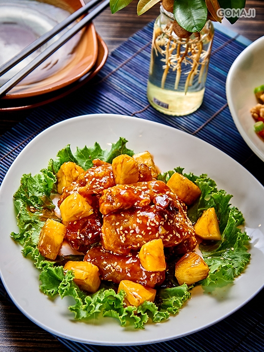 話梅是由成熟的青梅醃漬曬乾成,嚴選小火慢熬而成的話梅醬,搭配腐皮包捲芋頭製成的素排骨一起拌炒入味,風味有如京都排骨般酸甜滑嫩,老少咸宜。