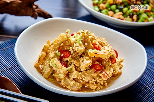將豆腐切塊後先炸成外酥內嫩的炸豆腐,淋上微辣醬汁煨煮入味,使豆腐外皮吸飽醬汁,一口咬下,外酥內嫩的雙重口感讓人一就吃上癮。