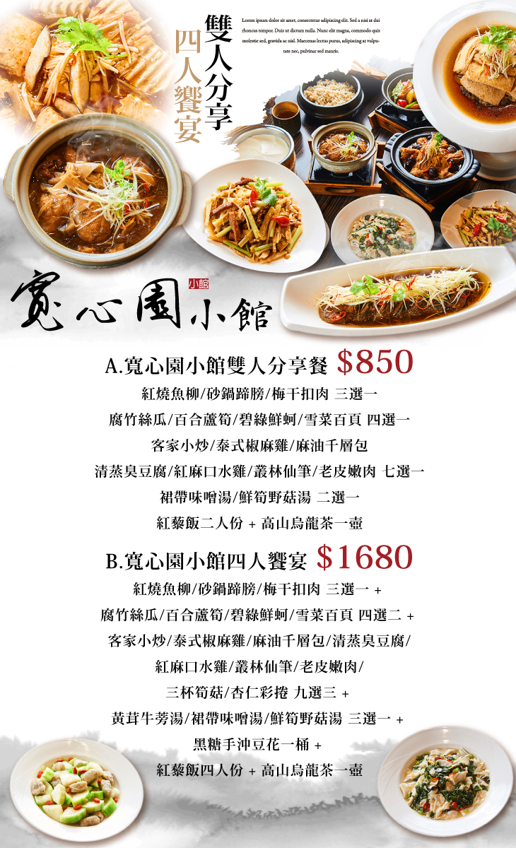 A.寬心園小館雙人分享餐