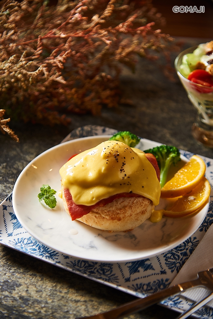 散發迷人鹹香的香煎培根班尼迪克蛋,香脆可口、蛋香四溢,香煎培根揉合著鮮蔬果的香氣,班尼迪克蛋柔滑的質地閃耀誘人,等不及全送入口中,濃郁的甜蜜感化在嘴裡,內心也感受到這份幸福,讓人深深愛上的美式好味道~
