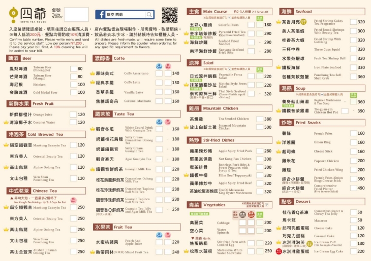 甫入店內,美輪美奐的古典宮廷風映入眼簾,橫躺的大佛、優美的小橋流水造景,在貓空湛藍的天空之中,勾勒出猶如世外桃源般優美夢幻的景致,您可以相約三五好友一同坐在富麗堂皇的喫茶包廂中,一品茶香回甘、眺望遠山風景,用窗外綠意盎然的生機與純淨的藍天,佐茶享受忙碌生活中從未留意過的自然芬芳,細細體會台灣豐饒的山脈與生機。此外,【四爺】豐富的菜單選項,每一道都充滿主廚的巧思,要用當地的鮮食美饌搭配壯麗景致,為您點綴不同以往的休憩時光。
