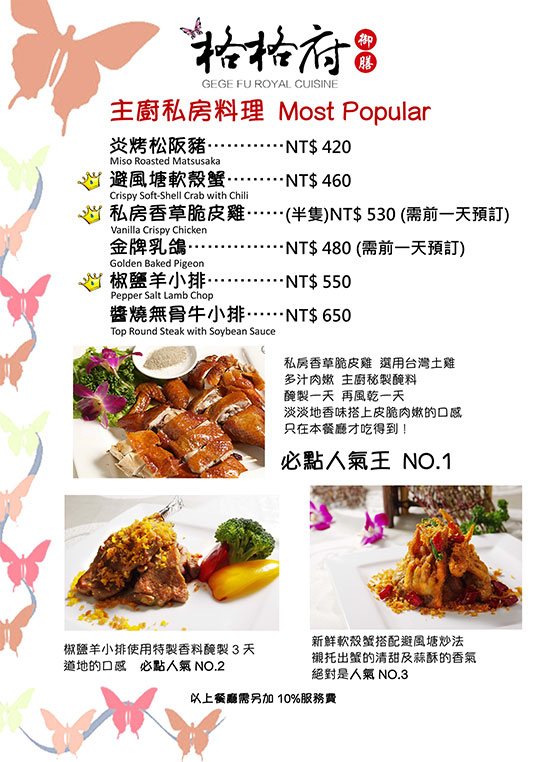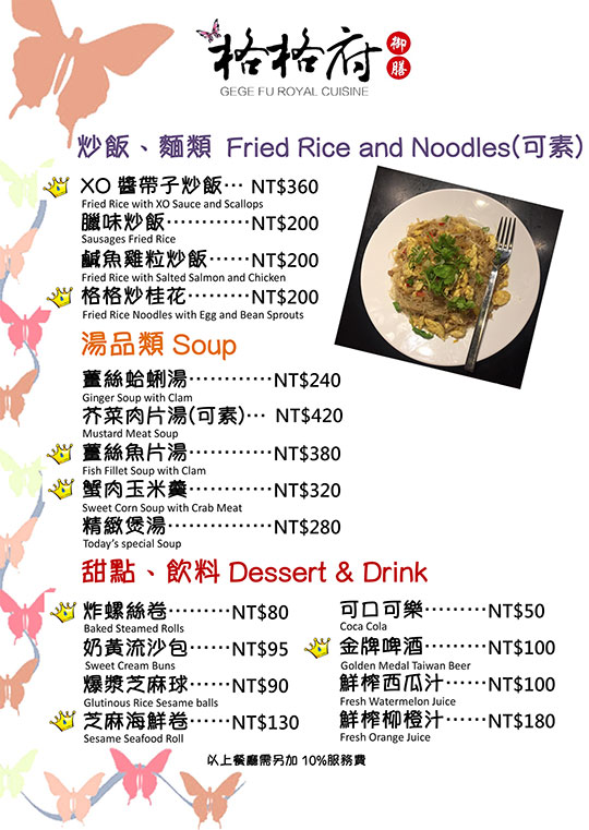 菜餚因季節或供貨影響,內容將依實際狀況調整,菜色以餐廳現場供應為主