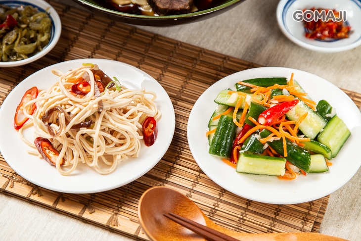 清涼脆口的涼拌小黃瓜,又冰又涼,還帶有酥麻辣感,不僅去油解膩,更是開胃神器!搭配絲絲入味的三色干絲,簡單,卻又得以將主食牛肉麵烘托得更加香濃味美,無疑是品嚐牛肉麵最佳的小菜選擇!