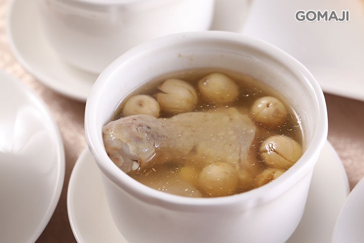 嚴選新鮮雞肉、薏仁、蓮子等食材慢火費時細細燉煮而成的精燉薏仁雞湯,湯勺一舀送進嘴裡淺嚐,湯頭溫潤甘醇、口感細緻滑順!搭配肉嫩不柴的雞肉一同享用,冬天來碗熱熱雞湯燉補,再適合不過!
