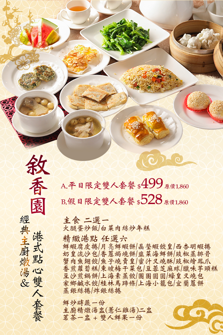 【A . 平日限定 - 經典主廚燉湯 & 港式點心雙人套餐】