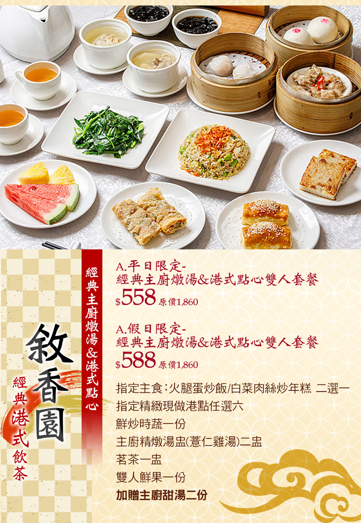 B.假日限定-經典主廚燉湯&港式點心雙人套餐