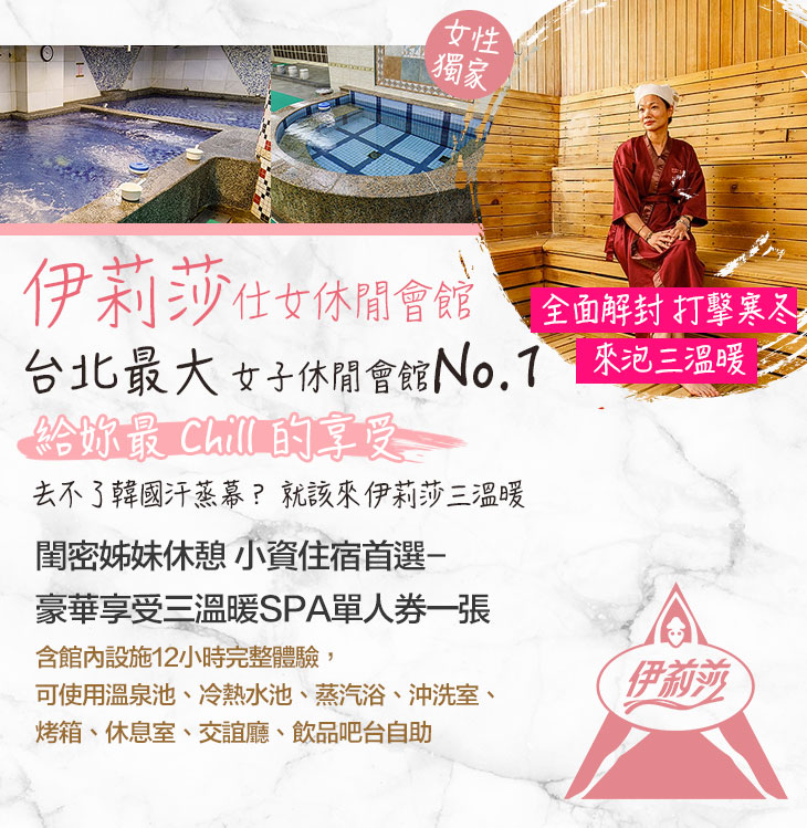 ★ 閨密姊妹休憩 小資住宿首選-豪華享受三溫暖SPA單人券一張