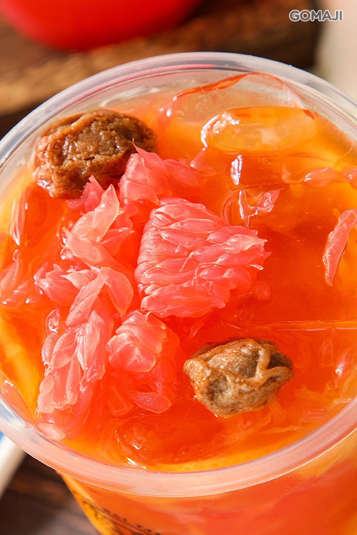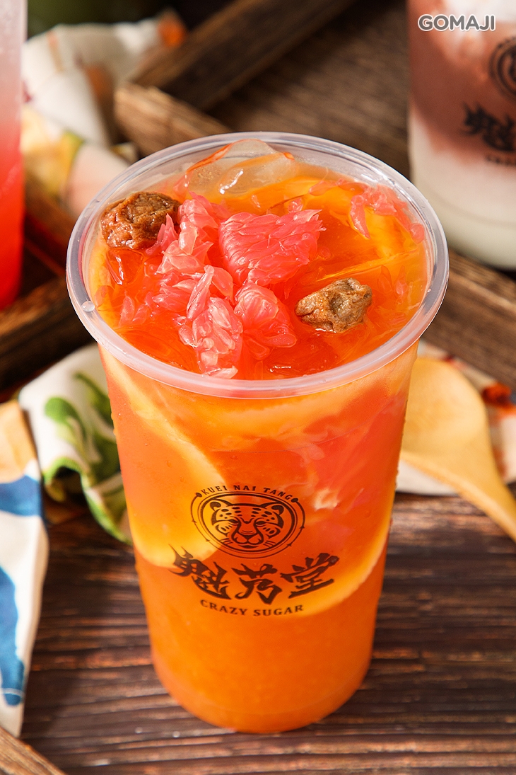 橙紅豔麗如晚霞般的葡萄柚綠茶,色澤美艷動人、果粒酸甜、葡萄柚清香 ~ 層次豐富又耐人尋味。