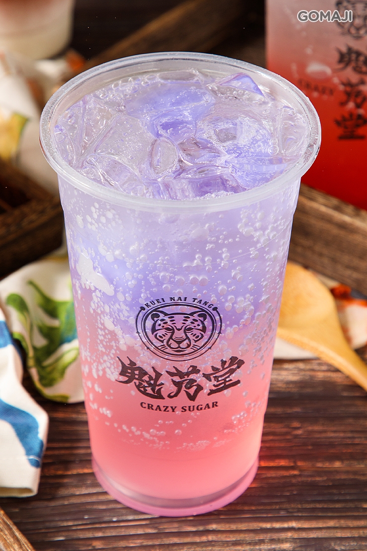 光看就讓人少女心奔放的玫荔氣泡飲,剔透粉紫的調色、酸甜清新的口感,飲入的每一口,如戀愛般的滋味,甜美又幸福。