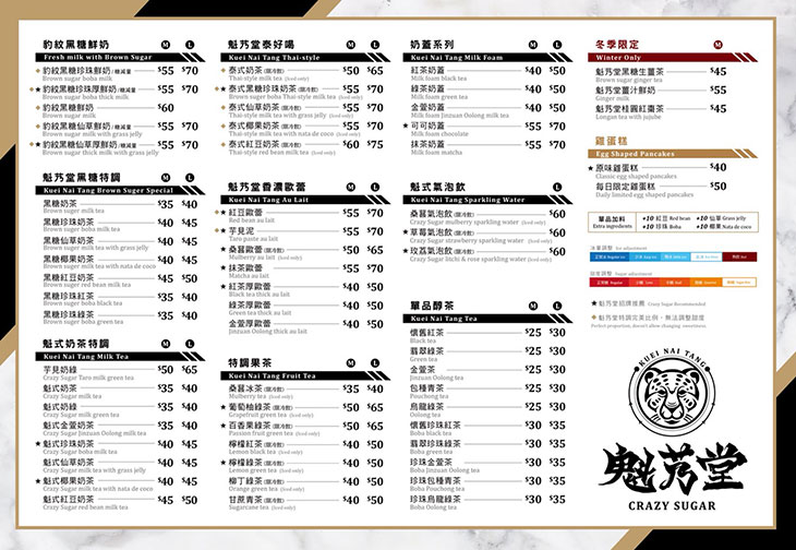 濃香甜蜜的黑糖,緩緩注入杯中,絲滑醇厚的奶茶換上一襲華麗霸氣的外衣,幽然冰涼氣息四溢,風格獨特、口口暢飲!店家以獨特比例、上選用料、嚴謹製程,現點現做,為您特調出一杯杯蘊藏用心的飲品,大地的芬芳與甘甜在杯中緩緩醞釀,沁人心脾!