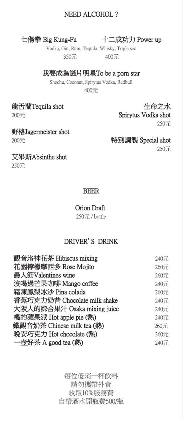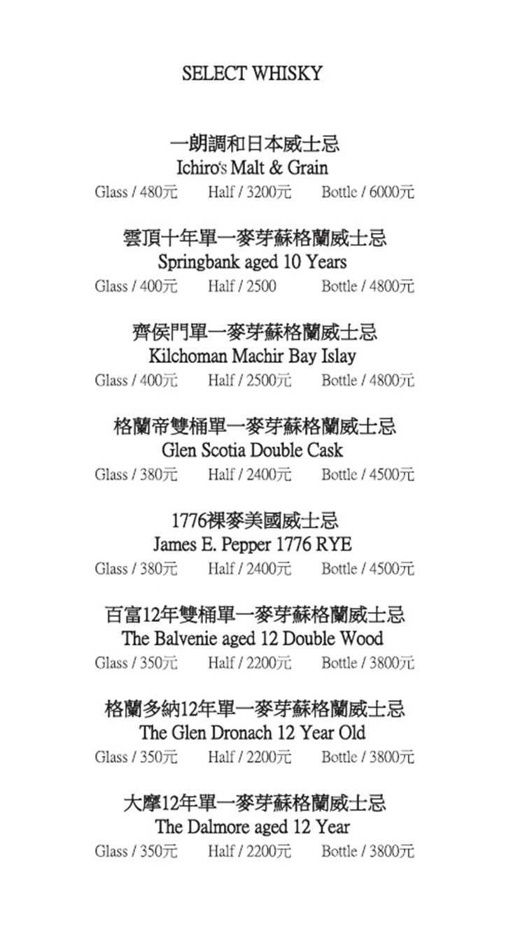 營業時間:週一至週四 18:00~01:00 週五至週六 18:00~02:00 每週日公休