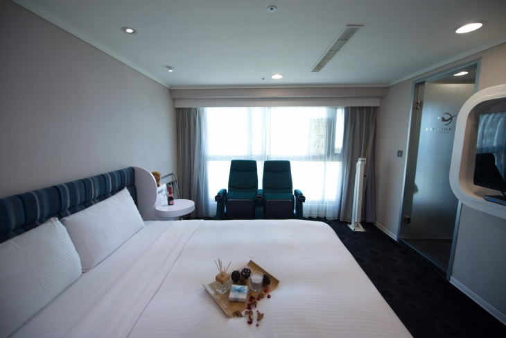 運用淺色調綴以深色家具與地毯,突顯出其簡約奢華的調性,柔軟舒適的床組和恰到好處的寬敞空間,提升您的休憩品質,盡享完全不受打擾的兩人時光!