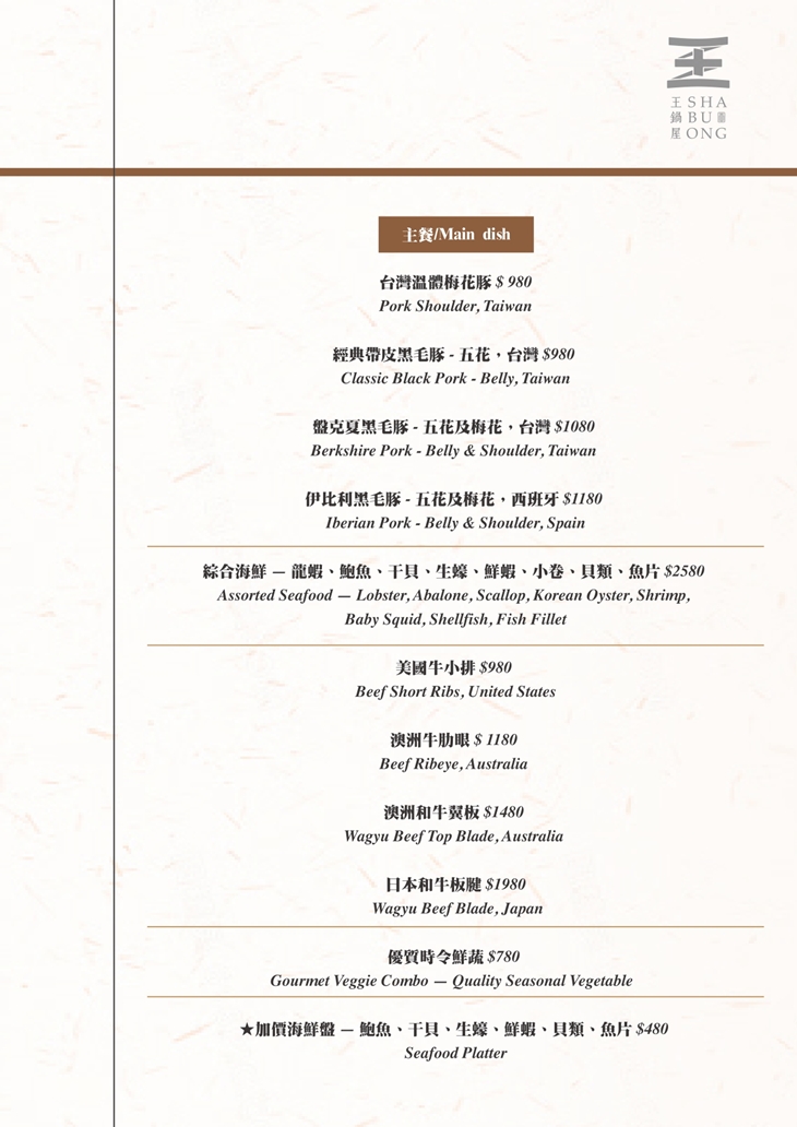 ◆伊比利黑毛豚-五花及梅花(西班牙)、加價海鮮盤