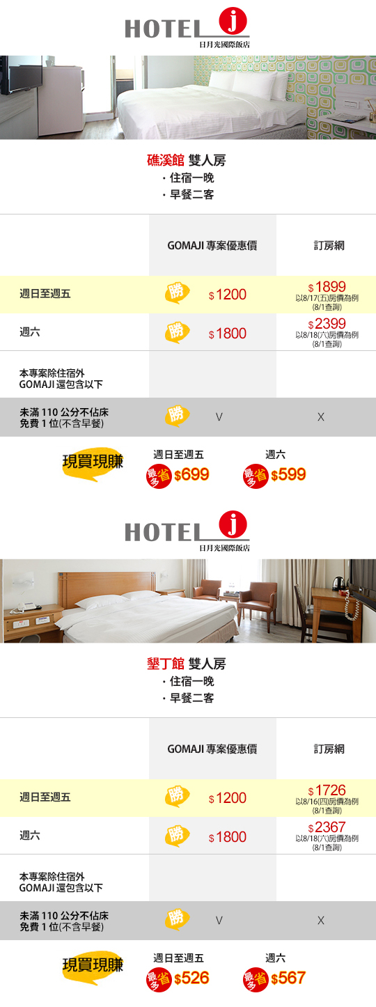 【Hotel j日月光國際飯店-礁溪&墾丁兩館聯賣】感謝麻吉們熱烈搶購,已全數賣光光。