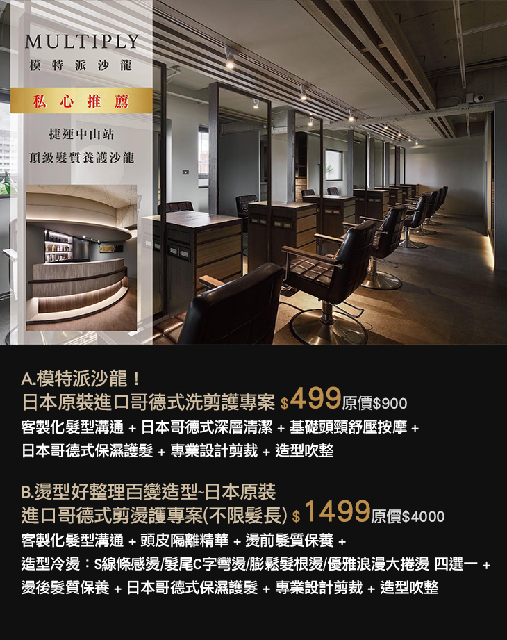 設計師精算每一吋髮絲,在下刀之前都會給予專業建議,無論男女生都渴望,擁有一頭適合自己、好整理的髮型,想打造明星風采,就不能錯過MULTIPLY SALON模特派沙龍。.jpg)