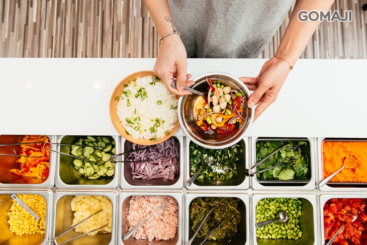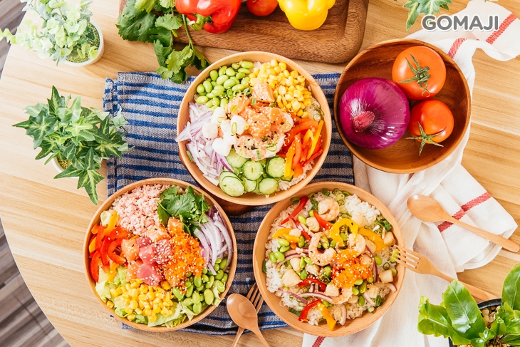 ✿STEP1.熱騰騰的主食(白飯/糙米/沙拉),自由搭配各式新鮮配料與蔬果