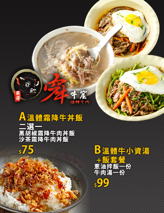 A.溫體霜降牛丼飯