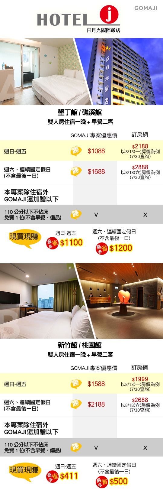◈ Hotel j日月光國際飯店-四館聯賣