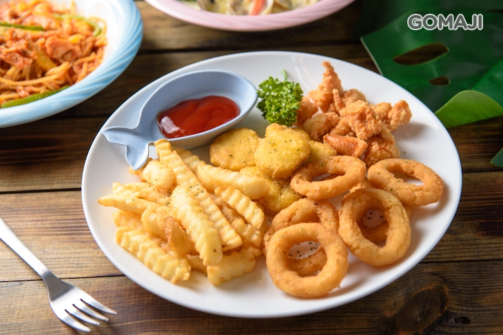 炸到金黃色澤的誘人炸物,沾點番茄醬更是美味再提升,非常適合和三五好友在此聚餐聊天、享美食配話。