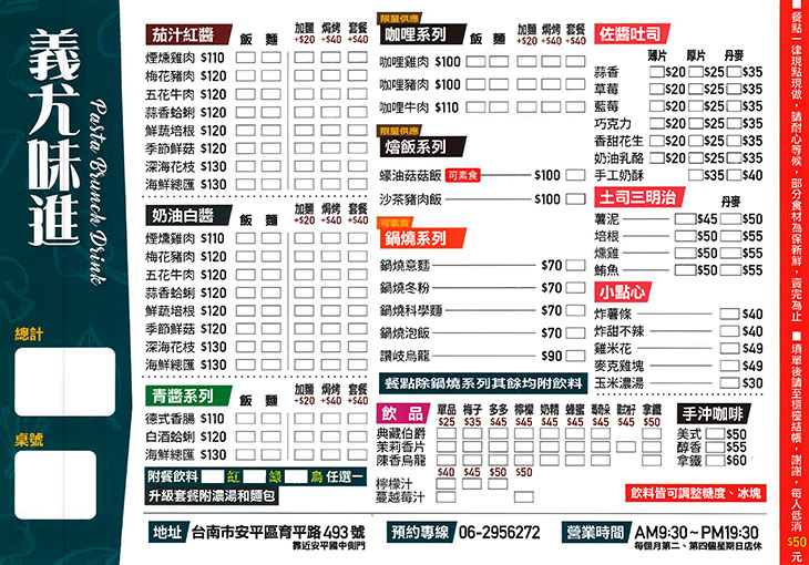 營業時間:週一至週日 10:00~14:30 16:30~19:30,其他不定期公休請參考FB公告