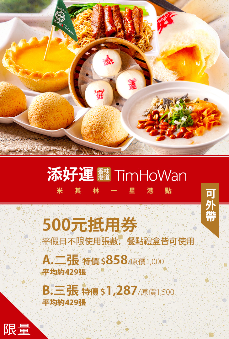 大家還記得這從香港來台頂級一流的熱門港點,ㄧ開幕便吸引大批人群排隊,無論任何時段,人潮總是絡繹不絕,從每個人臉上的神情就可以看出大家有多迫不及待想吃到這榮獲米其林肯定的傳奇風味!平假日不限使用張數,餐點禮盒皆可使用!讓您以平實價格品嚐香港最知名港點的色香味!