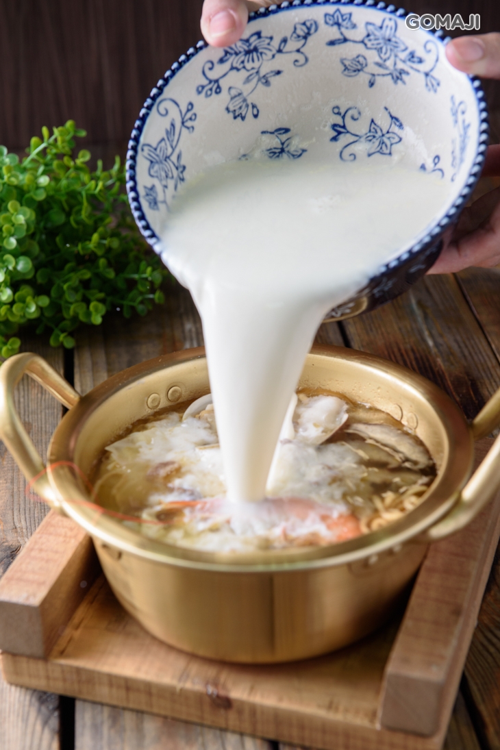 不加人工火鍋料,加入鮮奶熬煮,味道更為濃醇!海味與鮮味融合,令人食指大動!加入鮮蝦與時蔬,營養滿分!