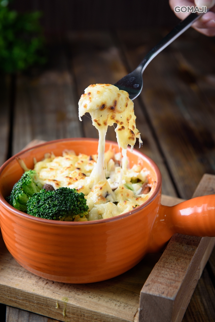 剛烤好的焗烤麵,鋪上滿滿的起司!香氣十足,這道令人飽足感十足的焗烤麵加入了時蔬,健康與美味兼具!快來嚐鮮!