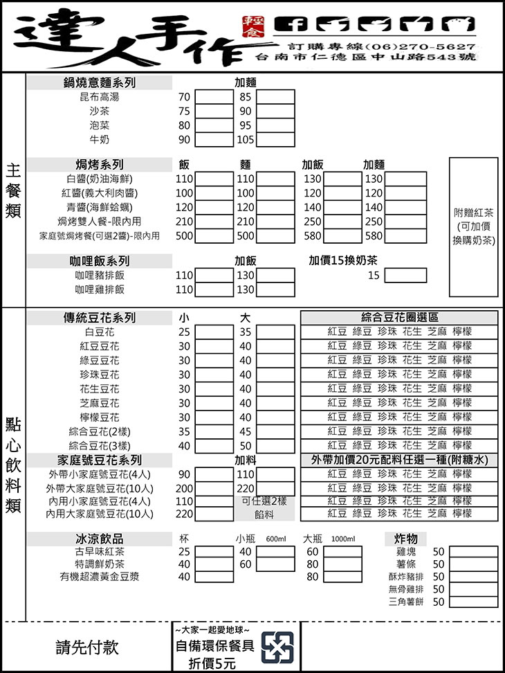 :: 達人手作輕食 菜單 ::
