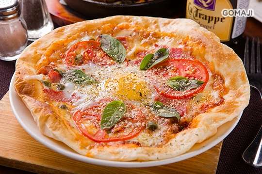 手工現擀餅皮,舖上馬札瑞拉起司後進爐薄皮窯烤,內層濃郁溫潤,外層薄脆彈牙!招牌的布娜飛披薩搭配蕃茄、培根、洋蔥,半熟蛋黃流淌而下,與薄脆餅皮形成完美組合!