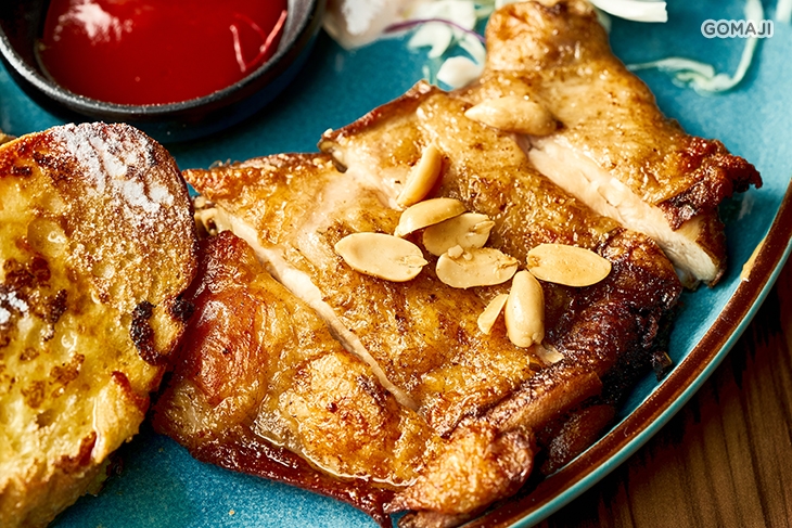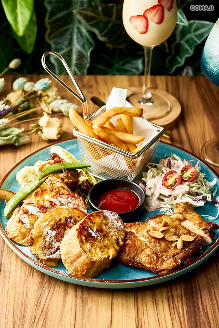 以恰到好處的火候烘烤,逼出多餘的水分與油脂,精華美味牢牢鎖在其中,雞肉鮮嫩多汁伴隨著鹹香精華在齒頰間綻放,吃過就愛上!