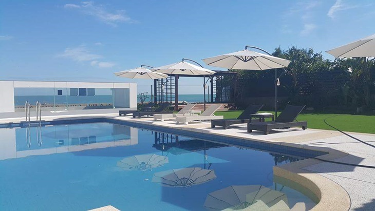 而室外設施有露天泳池、寬闊草坪,更是網紅私藏秘境!餐點部分;由遠赴法國進修後,挖角而來的五星主廚、日式及義式主廚坐鎮,提供各國精緻料理,滿足挑剔的味蕾。欣藍舍 Blue Villa 景觀餐廳,另提供住宿選擇,僅有4間雙人房,房內皆有獨立浴缸,選用精品Hermes沐浴組當備品,媲美五星級飯店規格!欣藍舍 Blue Villa 景觀餐廳優惠釋出,快帶著另一半來欣賞無敵海景吧!