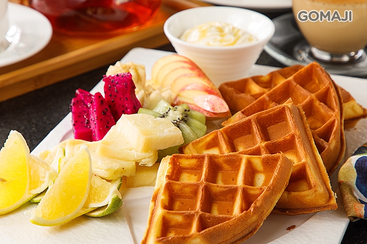 咬下一口酥脆的外皮,外層酥脆、內層軟Q!看看廚師們的精湛刀工,堪稱藝術品!搭配上各種時令水果,補充維他命同時也能吃得滿足。