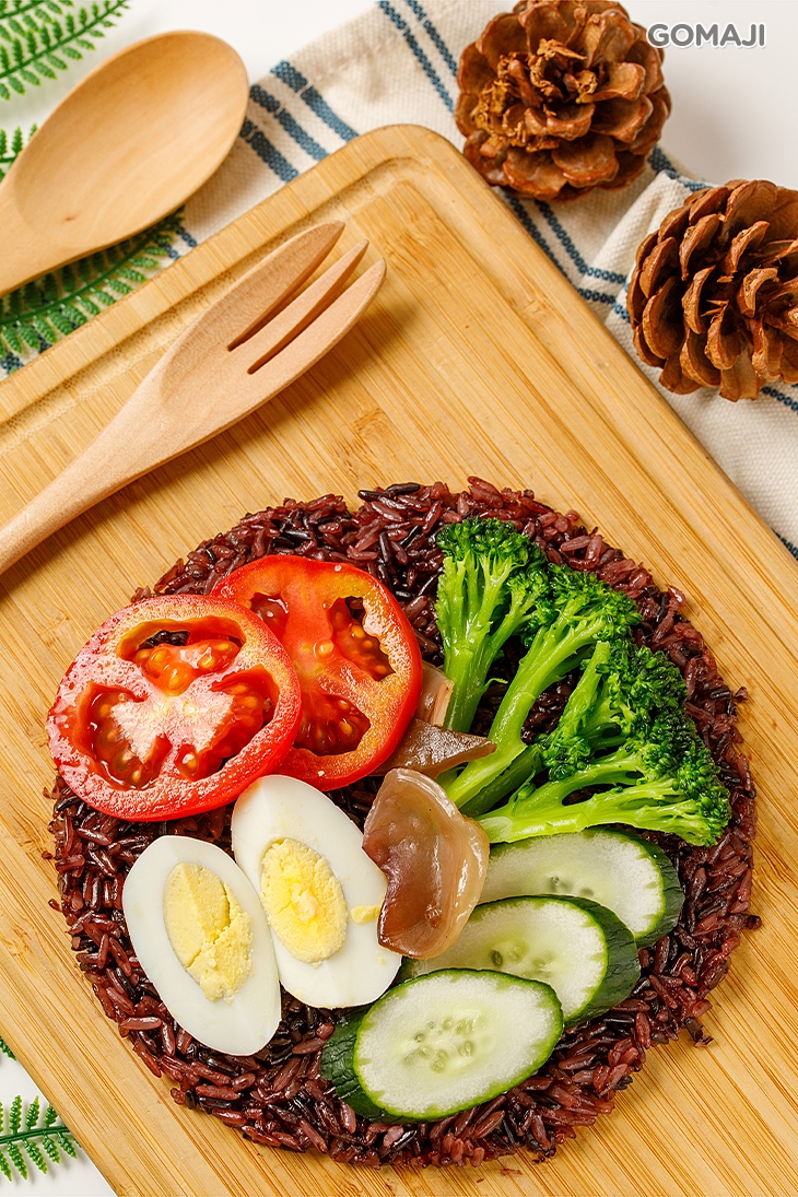 色彩及營養兼具的蔬食飯包,口感清淡又爽口。
