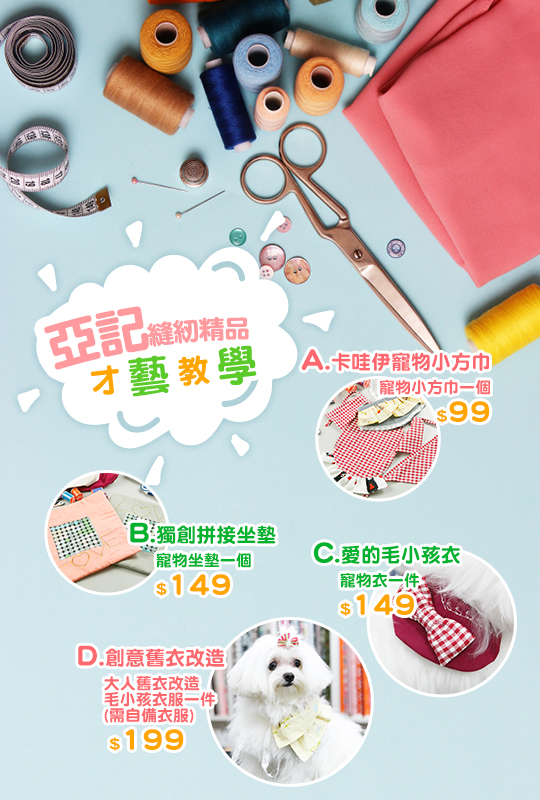 穿不下或是已經沒有在穿的衣服別丟掉,讓專業的老師教你怎麼改造成毛孩子的新衣服,從此舊衣再也不浪費!