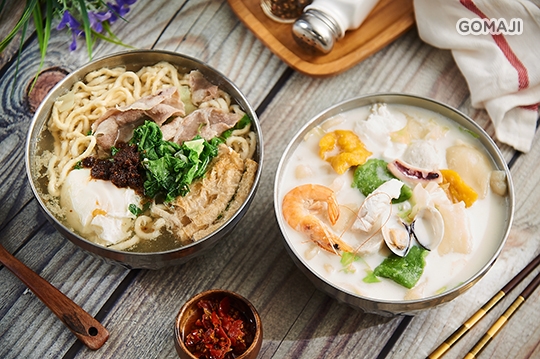 番茄海鮮(冬粉/意麵/烏龍/雞絲/麵疙瘩/泡麵/蒸煮麵)任選一 + 起司牛奶(冬粉/意麵/烏龍/雞絲/麵疙瘩/泡麵/蒸煮麵)/虱目魚肚麵疙瘩 任選一