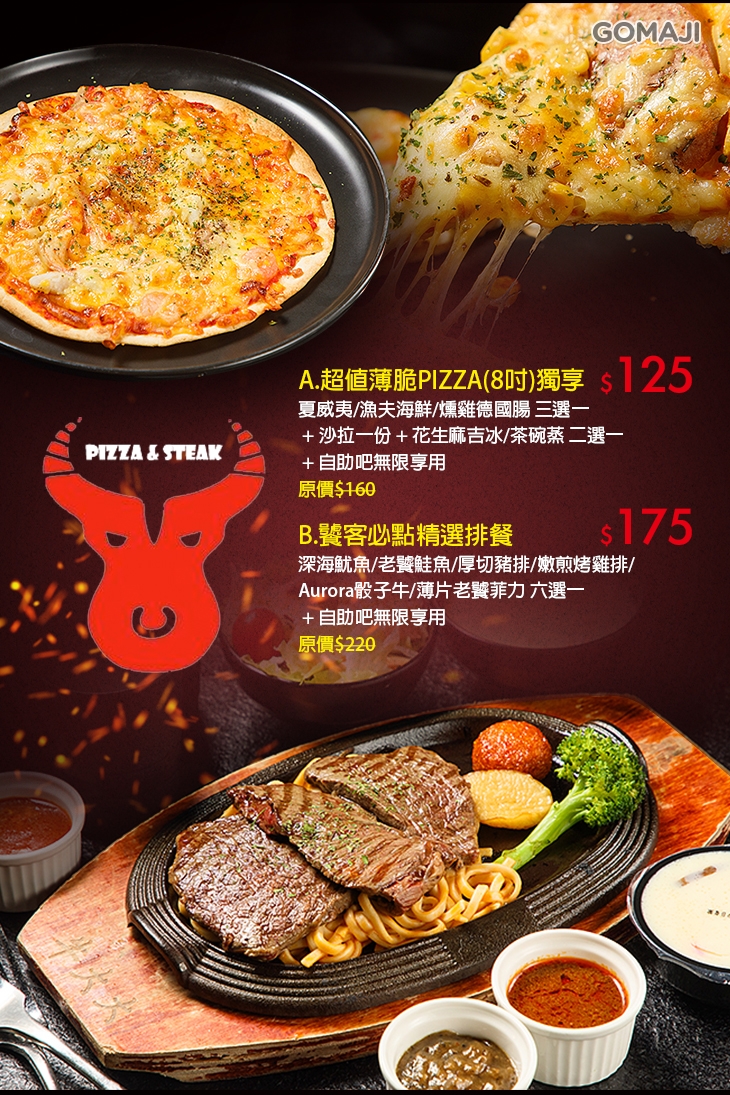 本次與GOMAJI聯合推出麻吉獨享超超超值優惠方案,午、晚餐地點還沒著落嗎?【牛大大pizza牛排屋】以高CP值的料理、熱情的服務,歡迎您來店品嚐看看喲!