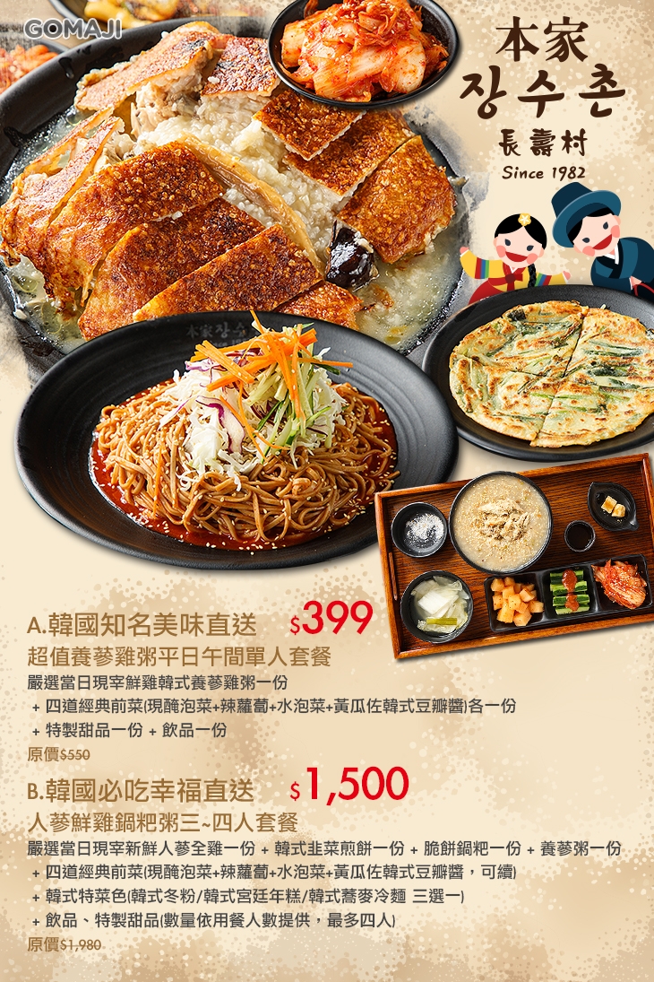 B.韓國必吃幸福直送-人蔘鮮雞鍋粑粥三~四人套餐