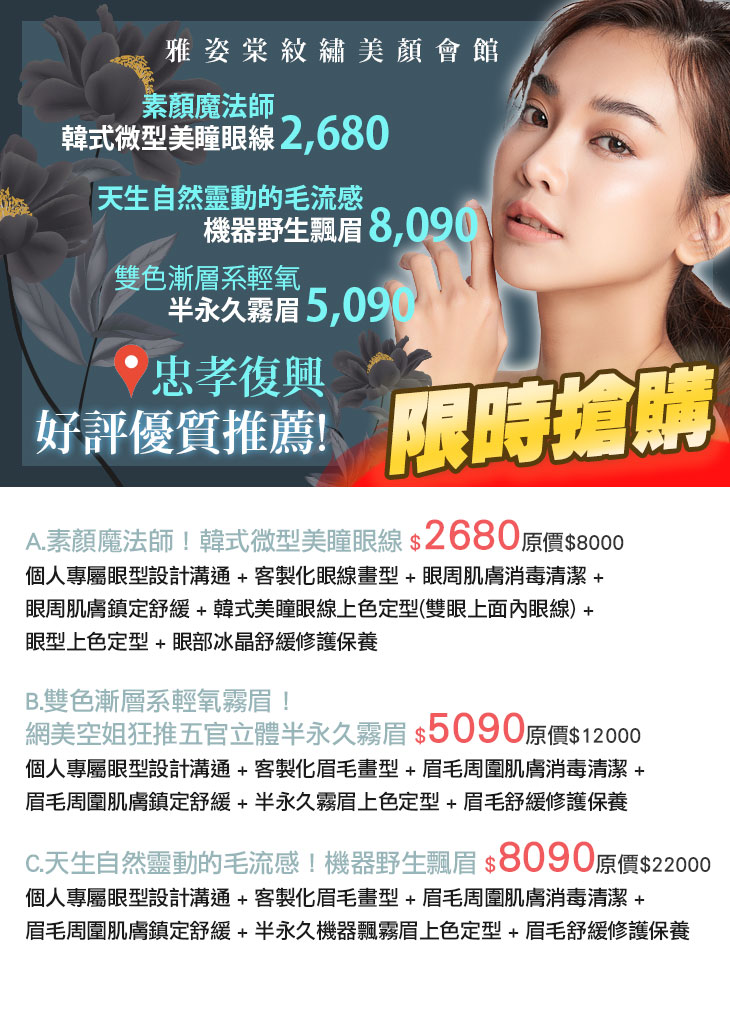 【雅姿棠紋繡美顏會館】感謝麻吉們熱烈搶購,已全數賣光光。
