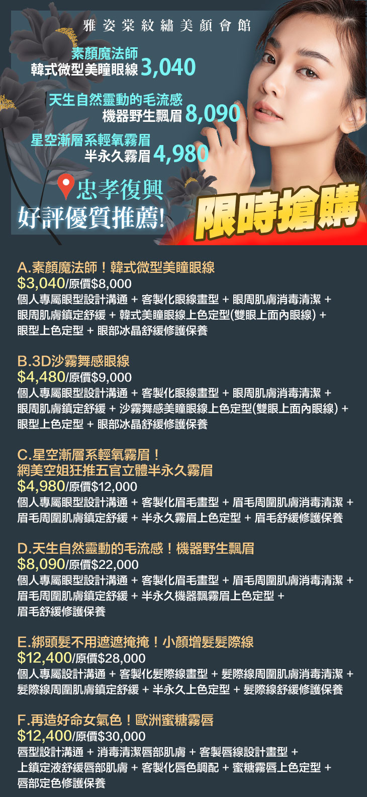 【雅姿棠紋繡美顏會館】感謝麻吉們熱烈搶購,已全數賣光光。