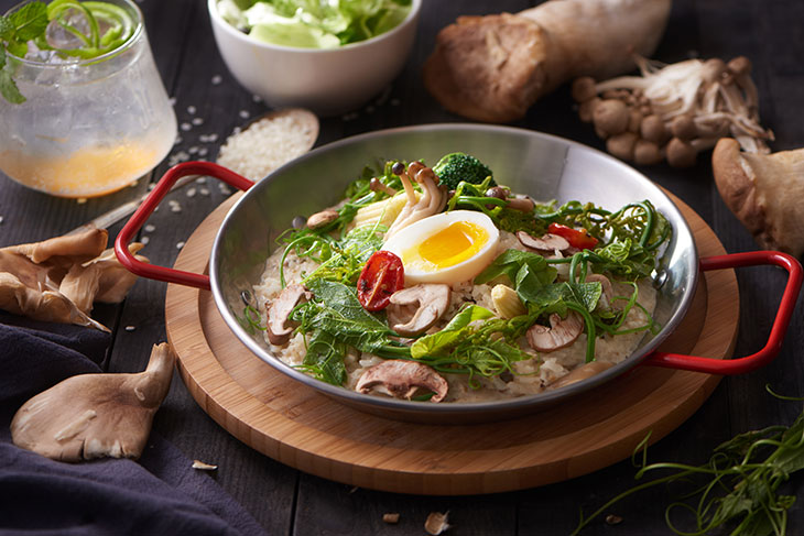 特選多樣菇類與綠蔬點綴,天然色澤相映出絢麗外表,滿溢著新鮮與芬芳,香氣淡雅、餘韻悠長!