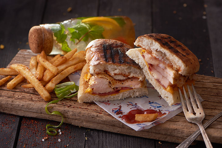 豐富食材層層疊出嗆辣爐烤豬肉帕里尼,大口咬下立即感受新鮮美味滿盈口中的享受,多汁、甜脆、香濃、鮮嫩的口感與滋味在唇齒間熱情起舞,震撼你的味蕾!