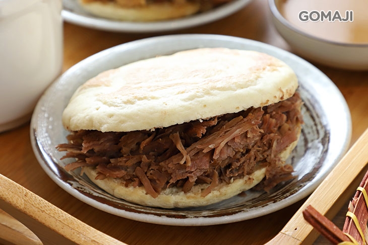 滷香四溢的臘汁豬肉與外皮鬆脆、內軟綿的白夾饃合為一體、互為烘托,將各自滋味發揮到極致 ~ 饃香肉酥,口感肥而不膩、回味無窮!