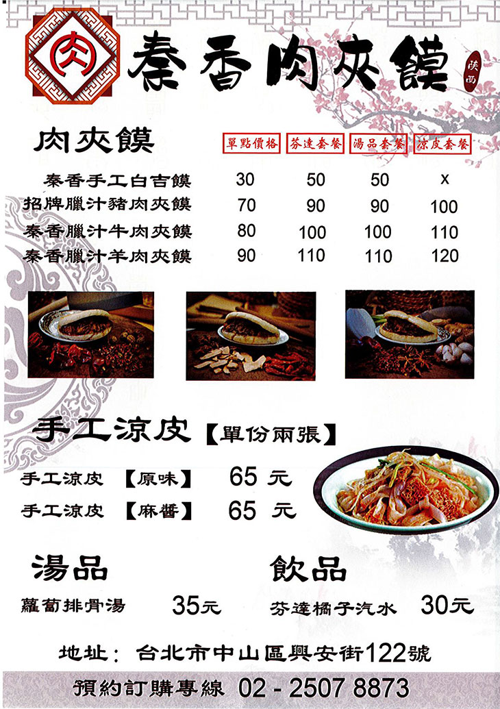 地點位於捷運南京復興站附近的秦香肉夾饃,店家在取名上也十分有涵意 ~肉夾饃是古漢語 " 肉夾於饃 " 的簡稱,又作臘汁肉夾饃,為中國陝西省傳統特色食物之一。 無論外型、概念都和漢堡十分相似 ~ 主打饃是手工製、自個烙 ~ 涼皮是ㄧ份份手工製、一片片蒸 ~ 連涼皮的配菜也不馬虎皆全手工 ~ 秦香對料理的用心,讓許多饃迷經常光顧。