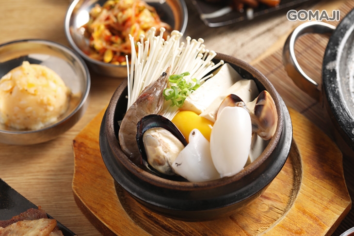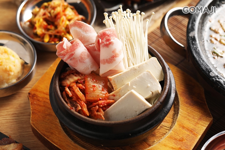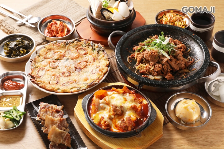 〈肉品:厚切豬五花/Okay秘醬牛/Okay秘醬豬/醃漬梅花豬 四選二 + 必嚐起司春川辣炒雞一份 + 海鮮煎餅一份 + 石鍋拌飯/湯品 二選一(湯品可選:海鮮豆腐辣湯/泡菜辣湯/大醬湯) + 五種韓式小菜無限供應〉