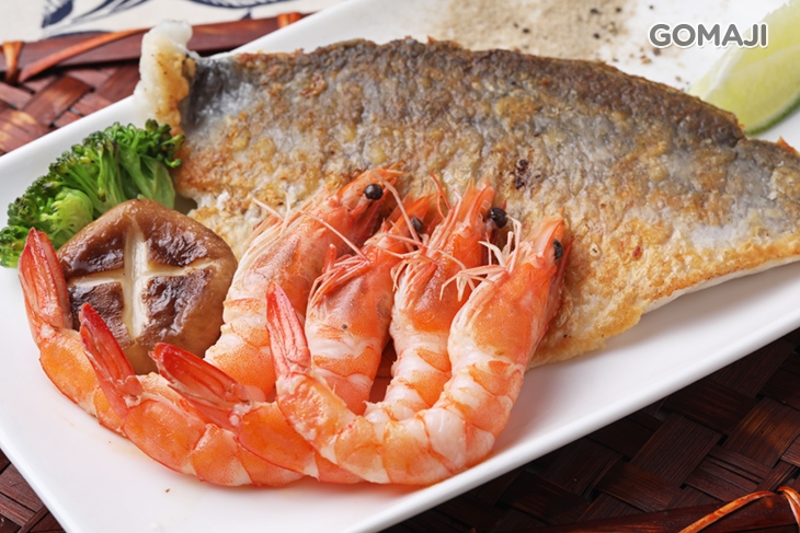 香煎鱸魚一份+香煎鮮蝦四尾