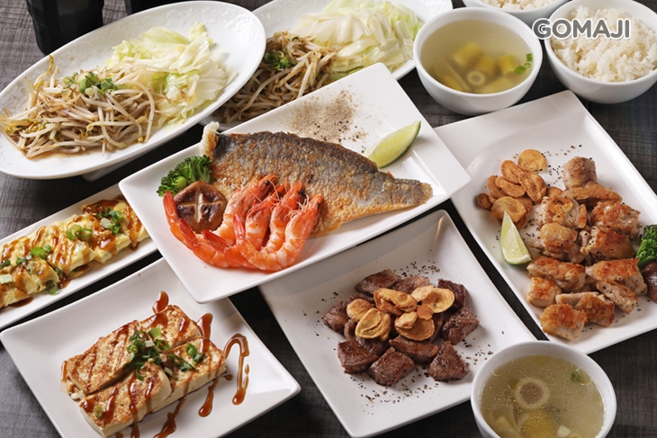 〈沙朗牛排/蒜香雞排 二選一 + 香煎鱸魚一份 + 香煎鮮蝦四尾 + 鐵板豆腐一份 + 蔥花蛋(二人份)/塔香煎蛋(二人份)/荷包蛋(二顆) 三選一 + 炒青蔬二份 + 炒豆芽二份 + 白飯、湯品、飲品無限供應〉