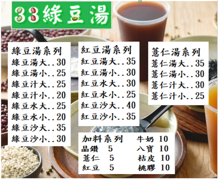 選用天然、無施用農藥的綠豆熬煮而成,綠豆跟紅豆一樣富含營養,且味道甘甜、爽口,淡雅的綠豆清香相當迷人,炎熱的天氣喝上一杯替您消暑、解渴、降火氣!