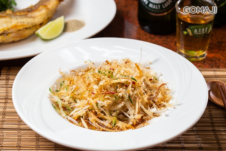 被煎炸得酥香無比的白帶魚,薄酥的魚皮內,是綿密鬆軟又多汁的雪白魚肉,趁熱品嚐,白帶魚豐盈的鮮香在唇齒之間綻放,下嚥後,淡淡的餘韻還縈繞在舌尖,令人回味無窮。