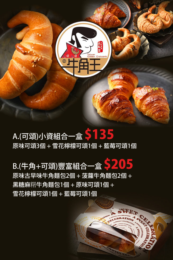 原味古早味牛角麵包2個 + 菠蘿牛角麵包2個 + 黑糖麻糬牛角麵包1個