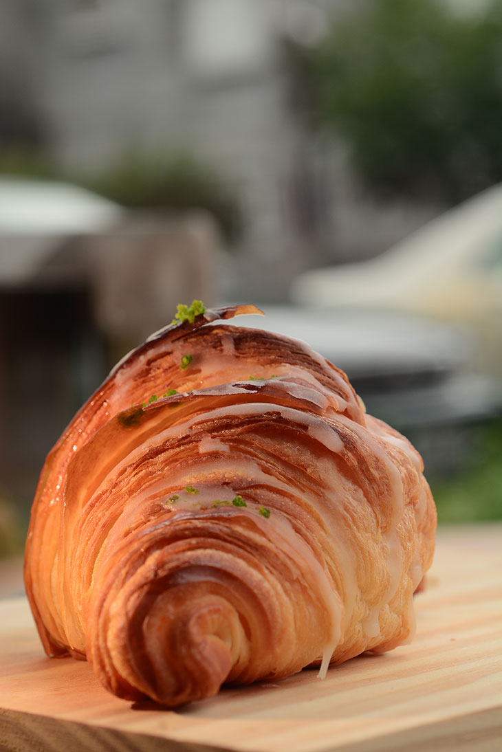 顛覆你的一般可頌的既定印象!在熱呼呼的可頌上淋上特製的雪花糖霜,撒上檸檬皮提升香氣,造就甜而不膩的幸福滋味!